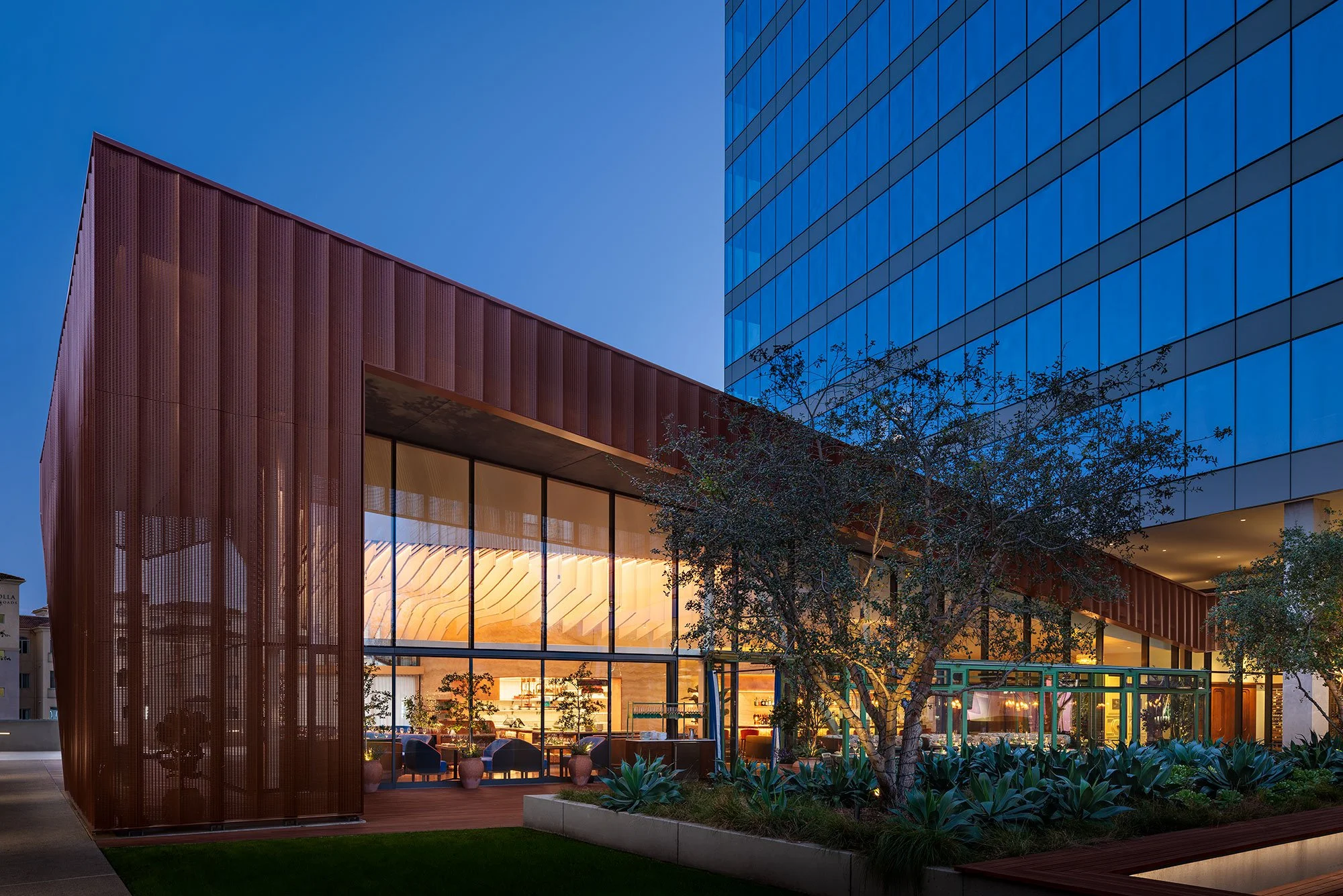 “Fleurette challenged us to create intimacy within a gestural and modern, three-sided glass building. The result is a space that balances elegance with comfort through a detail-rich layering of travertine, wood, sculptural forms, and light.”